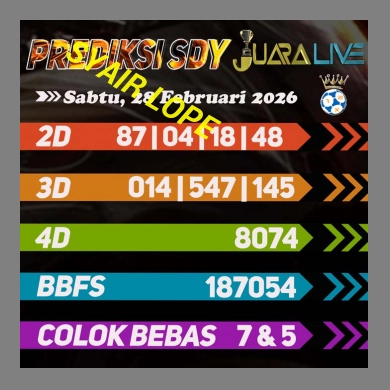 Untuk meracik angka sdy 2D, 3D, 4D kami menggunakan rumus ANGKA TARUNG SDY WLA yang tentu nya akan memberikan keakuratan dan meningkatkan persentase kemenangan anda yang akan selalu di update oleh PREDIKSI WLA :