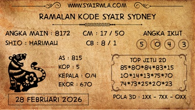 Syair Sydney Hari Ini Sabtu 28 Februari 2026